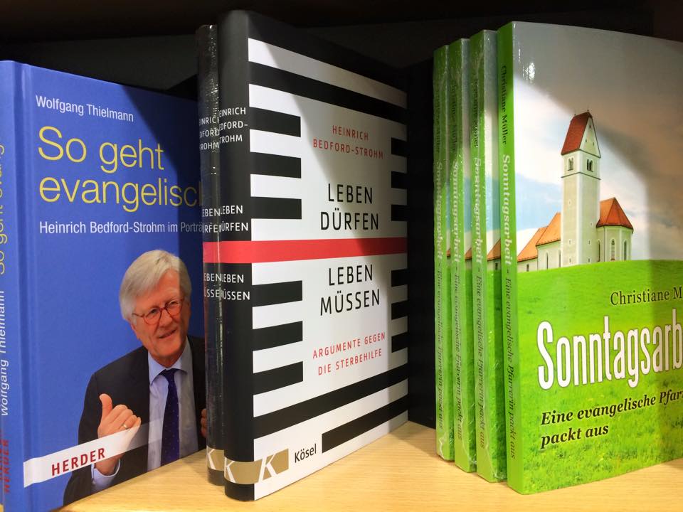 Besonders freut mich, dass die Buchhandlung meines Vertrauens, Buchhandlung Riemann in Coburg, das Buch bestellt hat. Zurzeit steht es in prominenter Nachbarschaft neben den Werken von Landesbischof Heinrich Bedford-Strohm. Welch Ehre.